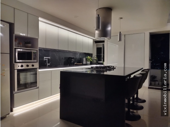 Cuenta con un area de 120m2. En su distribucion tiene tres habitaciones, tres baños, sala, comedor con amplia zona social, cocina integral y zona de ropas, sala de television y balcon. Cuenta con dos parqueadero privado y dos cuarto utiles.
